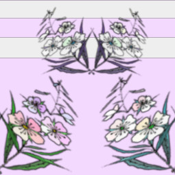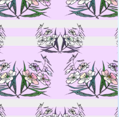 A rather fanciful design of crossed stems of lilac titree blossom in a staggered horizontal pattern with a background of stripes.