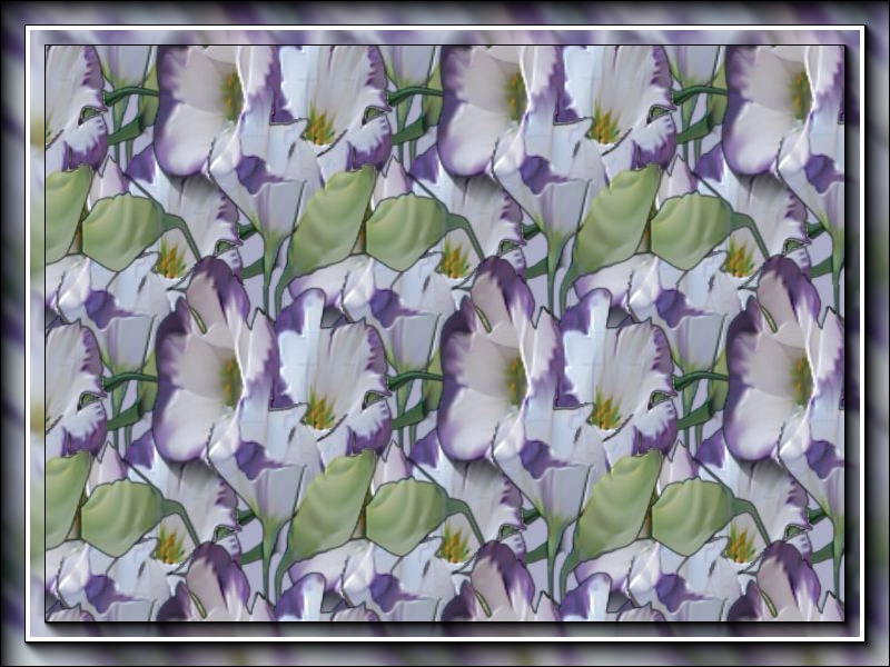 The stunning blue and white flowers of the cultivated Lisianthus in a bold repeat. [I understand the wild form is a half-hardy native perennial from the American prairie States . . . but I'm no expert so ignore if incorrect]