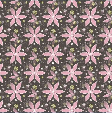 A large, 6-petalled daisy in a dusky pink is the dominant feature of this allover floral pattern.