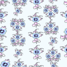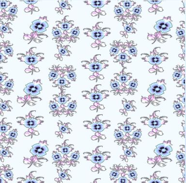 A sweet and dainty pattern of marigolds - singles and bunches - in delicate tonings of blue and lavender.