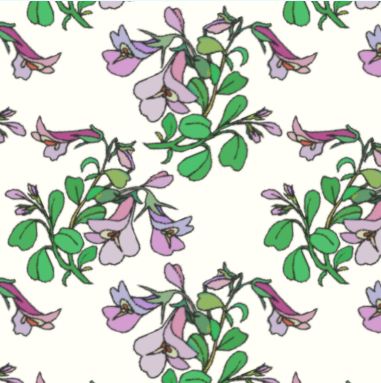 This pattern relies on the pretty mauve and lilac flowers and rough green leaves of the native peppermint bush for it's appeal.