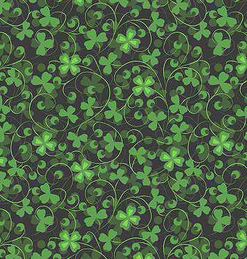 The traditional emblem of Ireland forms a dense pattern of green and black . . . 3 and 4 leaf clovers in profusion.