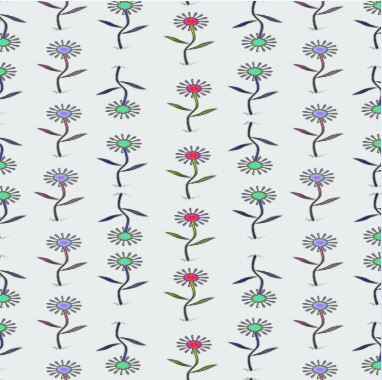 A single, line drawn daisy in three colours in a top and tail vertical pattern.