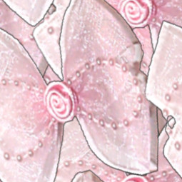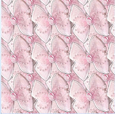 Pink and romantic, this pattern of big flat bows decorated with pearls and ribbon roses.