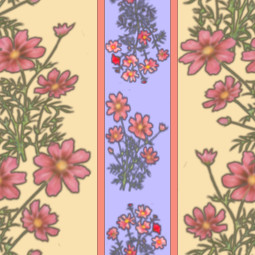 Sprays of marguerite daisies in two sizes, on vertical backgrounds of cream and sky, create a regency-type striped pattern