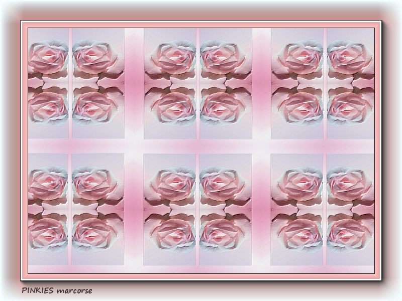 Pinkies refers to the beautiful pink roses used in this mirror repeat, faux tile pattern.