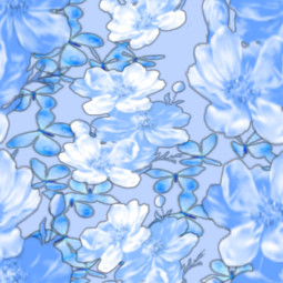A soft and pretty, blue floral pattern of anemones and butterflies - in Fabrics. Recolourable:4