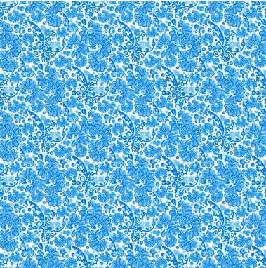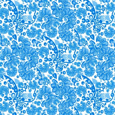 A bright blue floral pattern in the paisley style.
