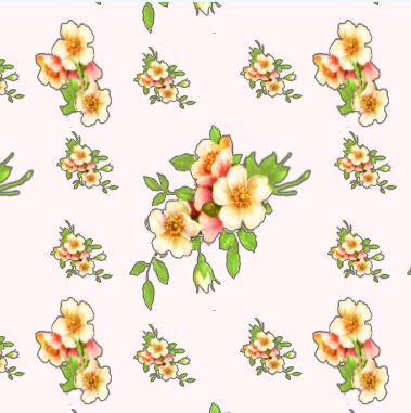 Delightful creamy roses with a pink blush, surrounded by green foliage - an appealing repeat pattern