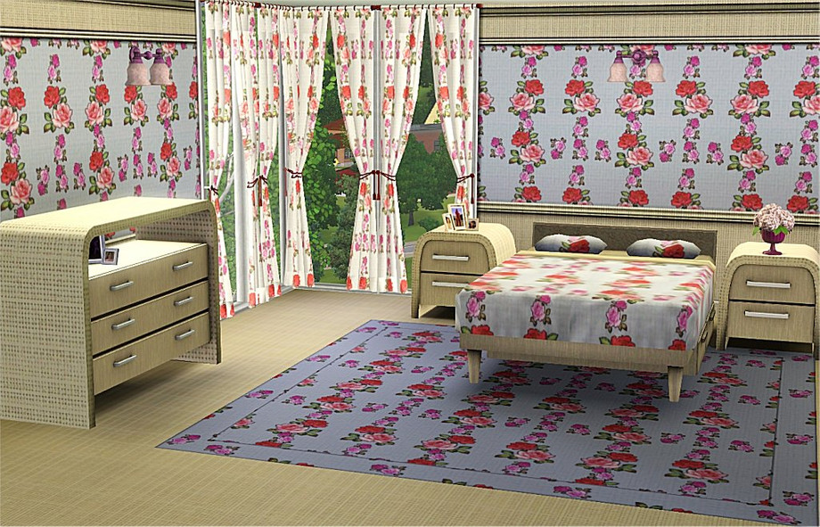 Made for TSR in Create a Pattern. Do not re-upload, except with lots or other items on TSR. Credit for items shown in style shot: Bed:aloleng. Sides/Dresser:D3W. Curtain:magicdawn. Flowers:lilyofthevalley. Frames:mensure