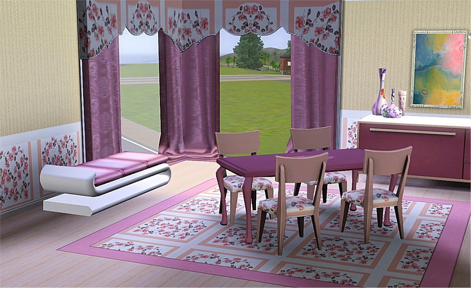 Credits: Painting: MrSimulator. Buffet: mensure. Curtain: matomibotaki. Divan: jomsims. Vases:SIMcredible.