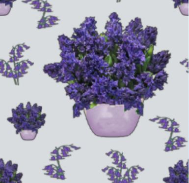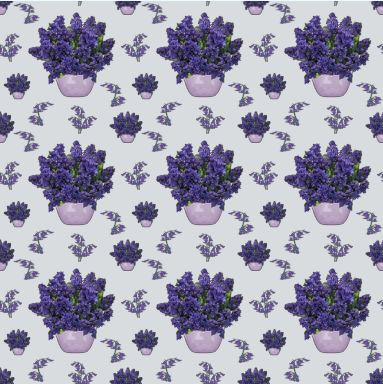 Hyacinths in the deepest and richest of royal purple are the focus of this floral pattern.