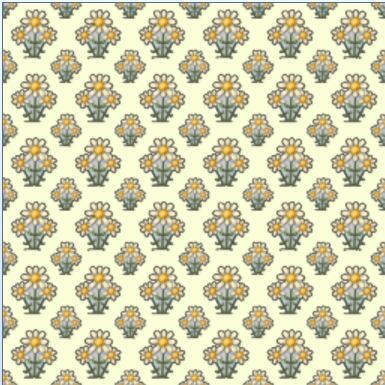 Another liberty-style pattern with three tiny flowers arranged in a triangle shape.