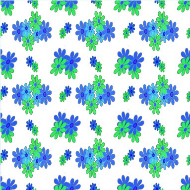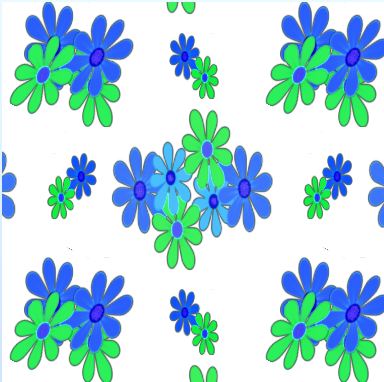 Two, four and six blue and green daisies in this crisp and cool repeat pattern.