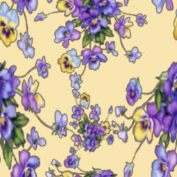 Scattered bunches of lovely pansy faces fill this sweet pattern. Recolourable: 4