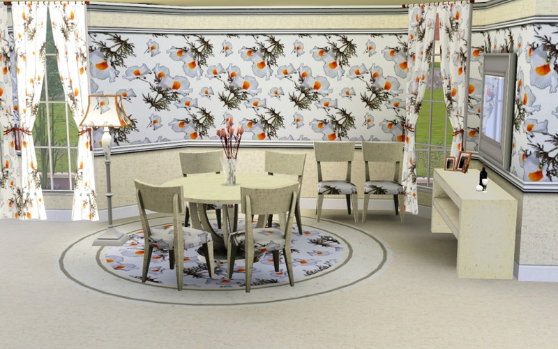Made for TSR in Create a Pattern. Do not re-upload, except with lots or other items on TSR. For Objects in the style shot, Credit to : Sideboard/frames/Wine:mensure. Window:dgandy. Curtain/rug: magicdawn. Flowers:jomsims. Table:LilyoftheValley