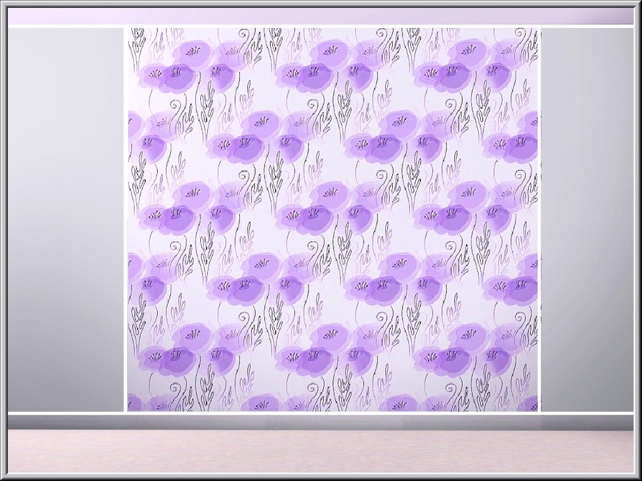 Fabric pattern: stylised violet flowers in a muted, misty design.