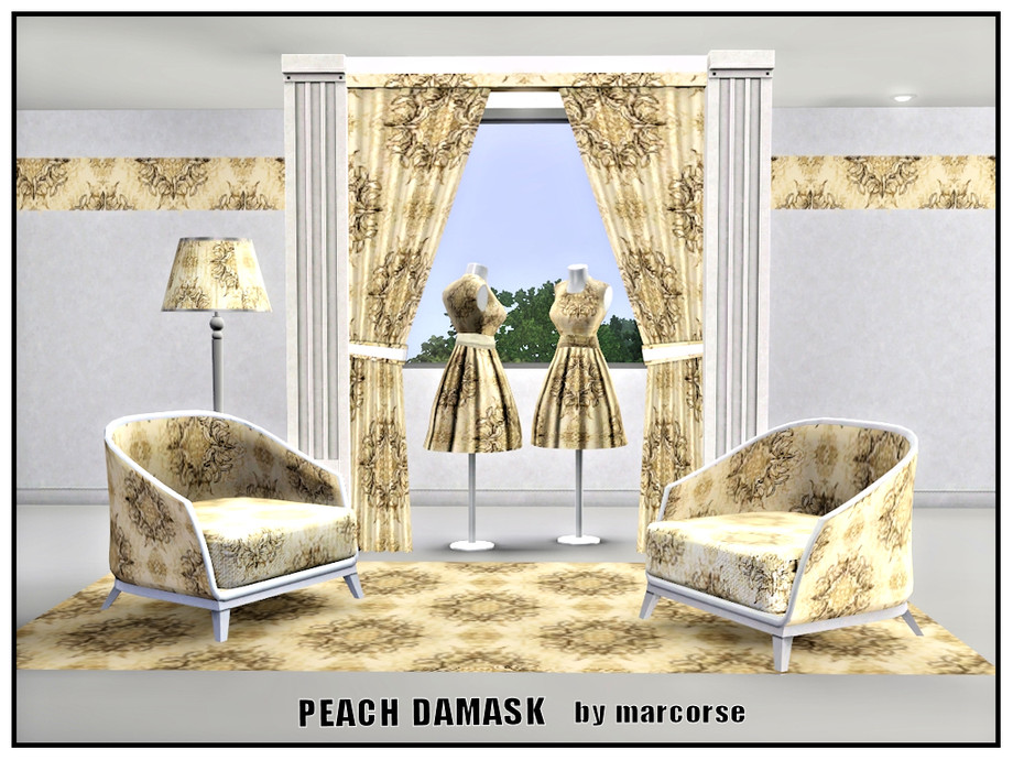 Fabric pattern: classic damask design in a pretty shade of peach.