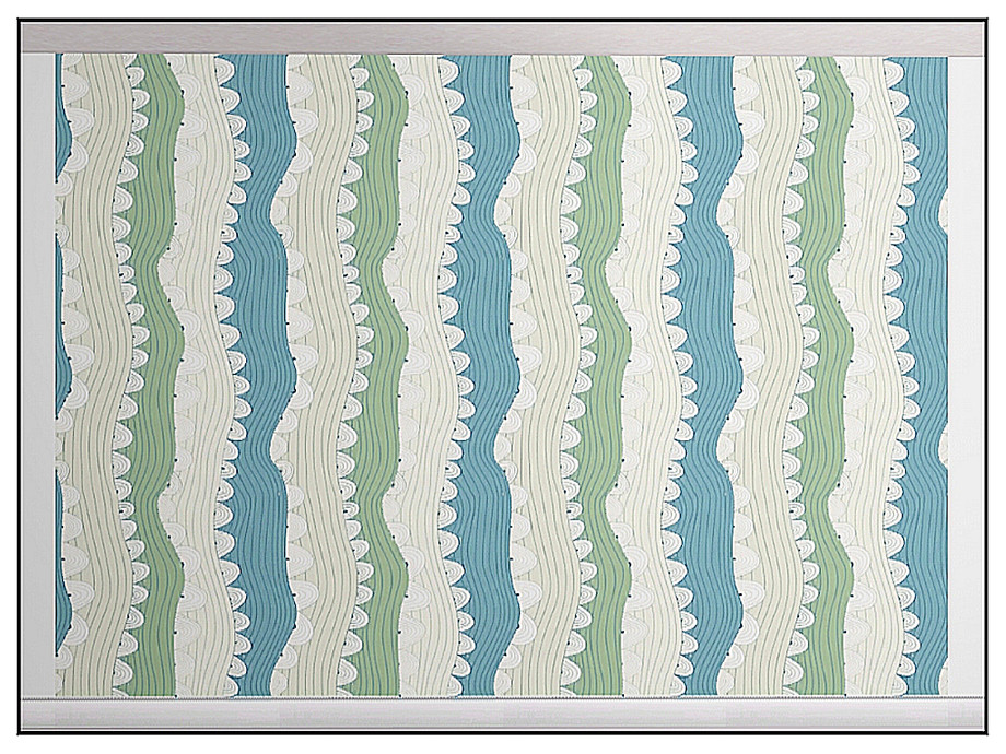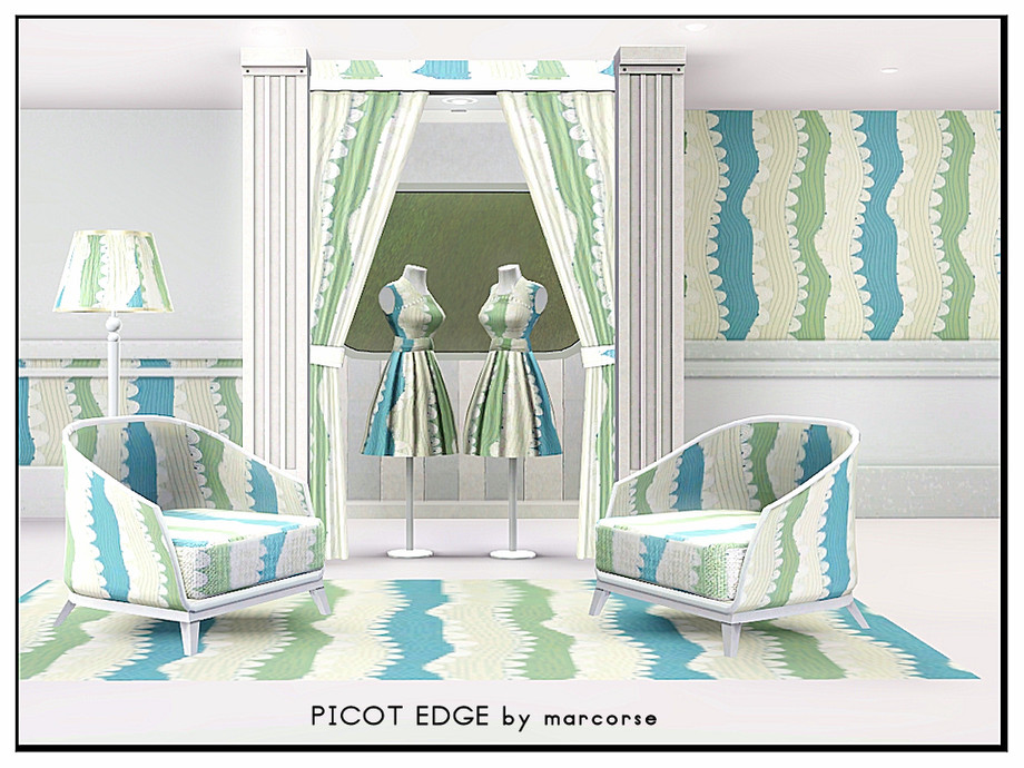 Fabric pattern: picot lace eding in a blue/green/white vertical design
