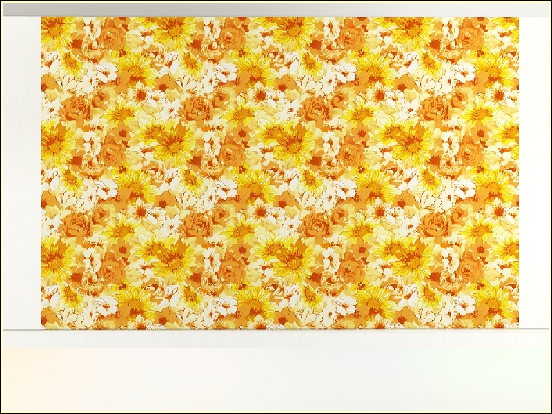 Fabric 'potpourri' of mixed orange and yellow flowers.