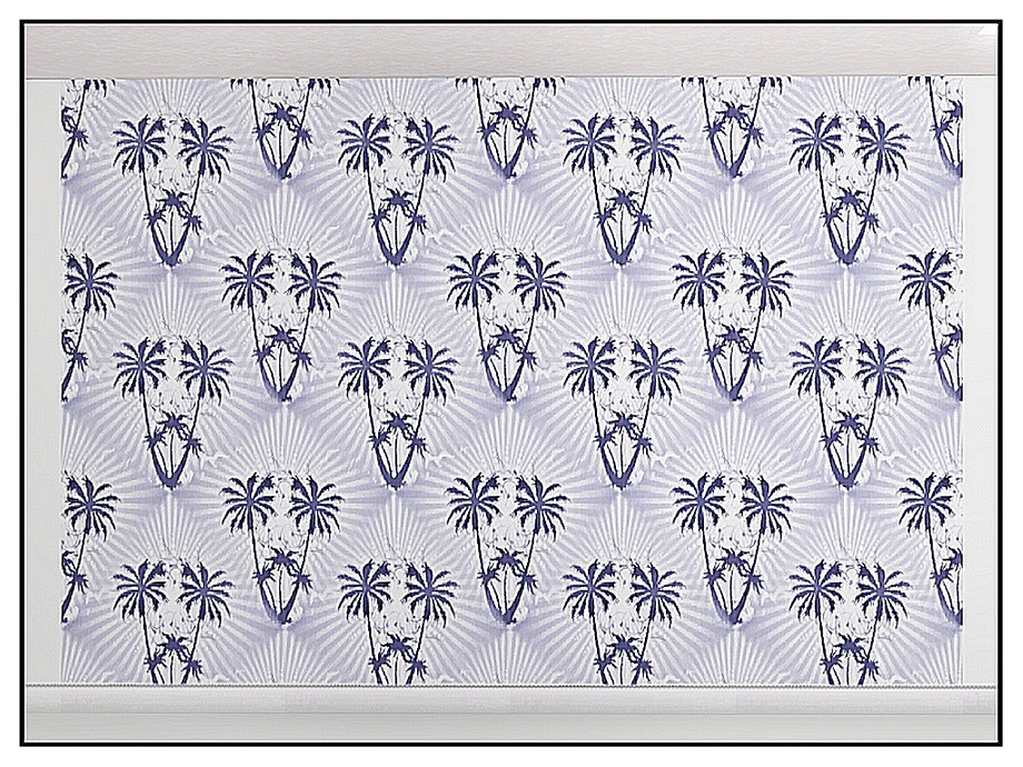 Fabric pattern: clumps of palms with radiant fill, in blue and white