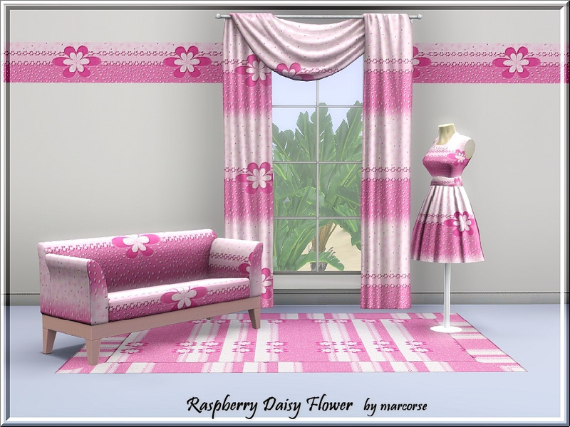 Fabric Pattern: tiny raspberry daisies with a deeper stripe and flower