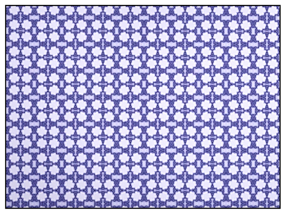 Fabric pattern: retro wallpaper design in shades of blue on white.