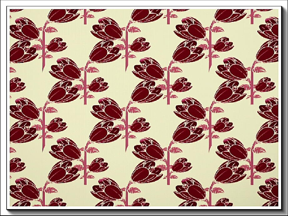 Fabric pattern: deep maroon crocus flowers in an upright design on creamy backing.