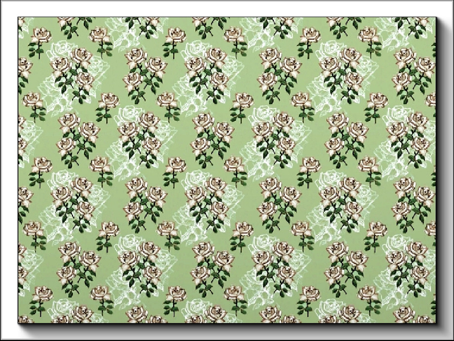 Fabric pattern: pink roses, green leaves with shadow effect on green.