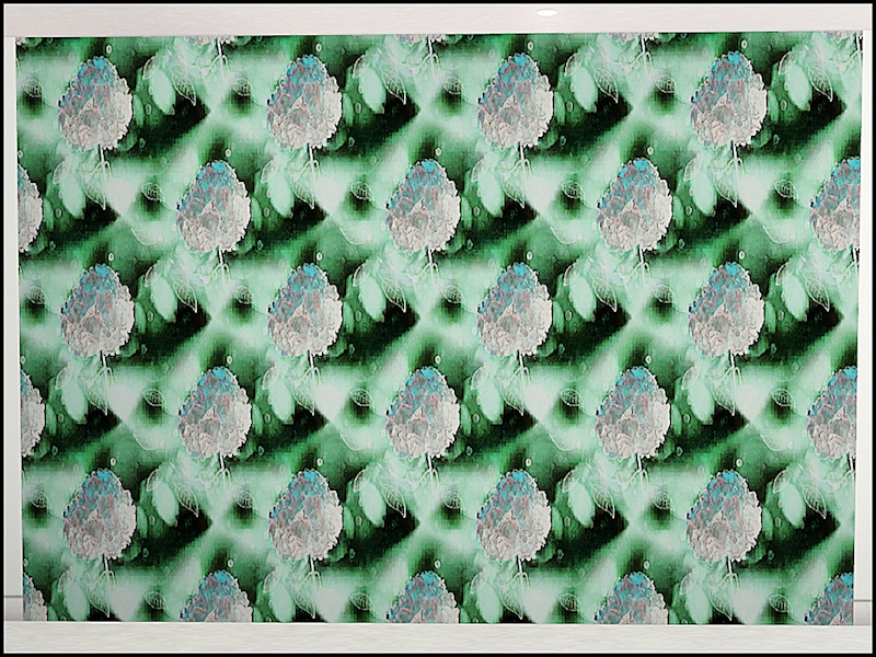 Fabric pattern - stylised flowers of the snowball tree in an abstract floral design.