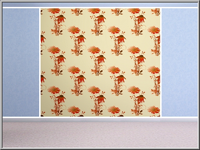 Fabric pattern: over-blown field daisies in red, brown and yellow
