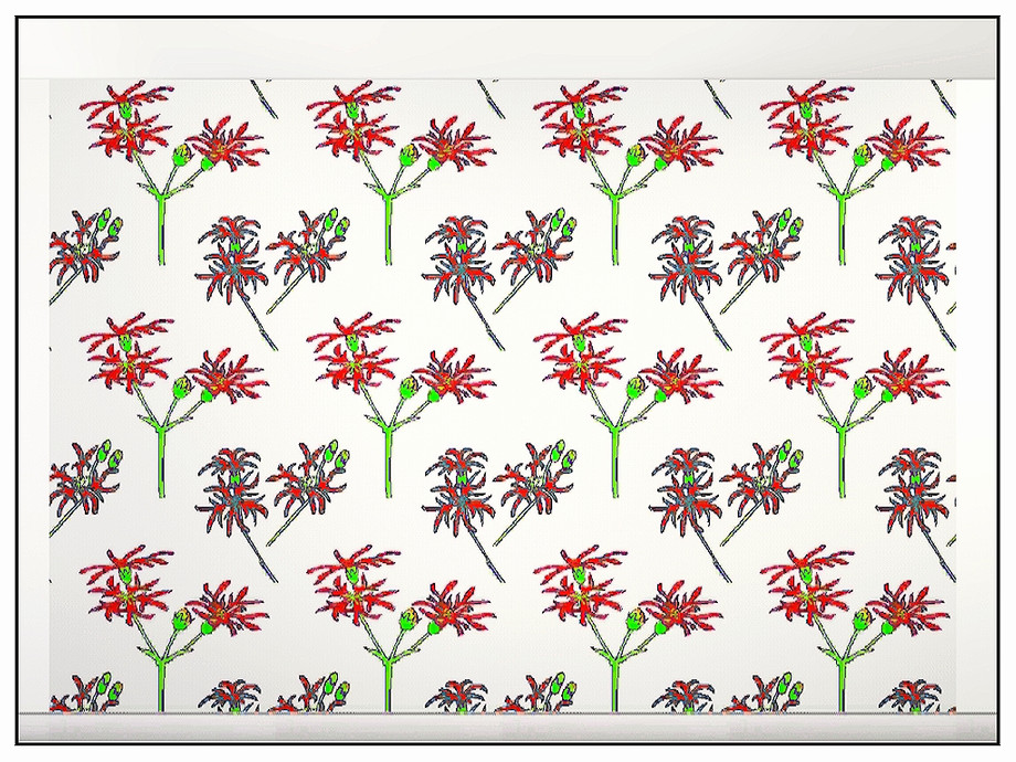 Fabric pattern - bold red nerines - spider lilies - in a random repeat eesign.