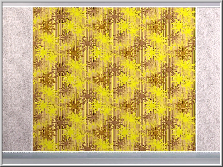 Fabric patern: stylised sunflowers on pinstripes in yellow and brown
