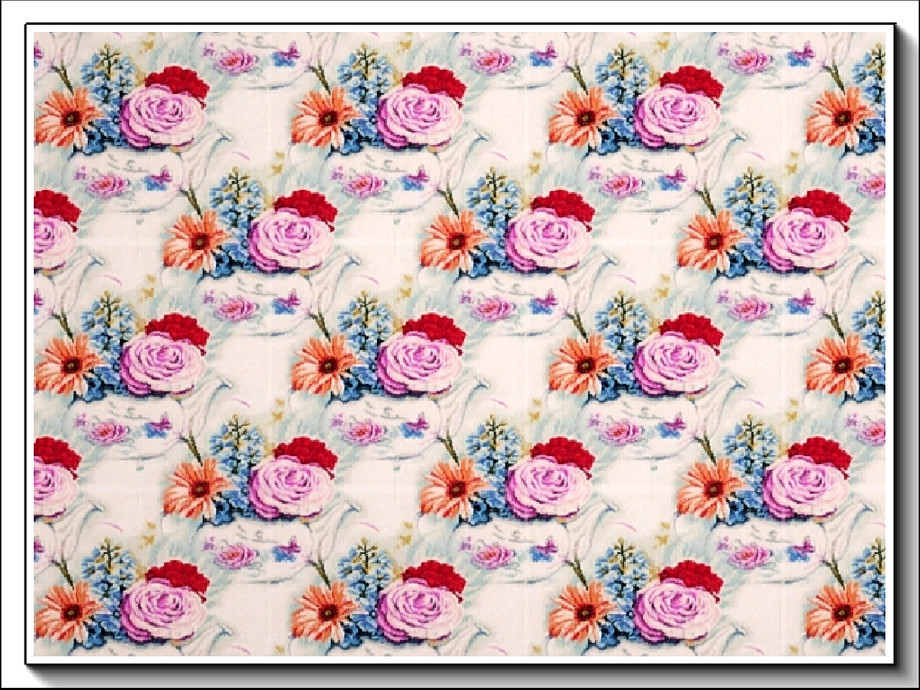 Fabric pattern - small rose posy in a white teapot.