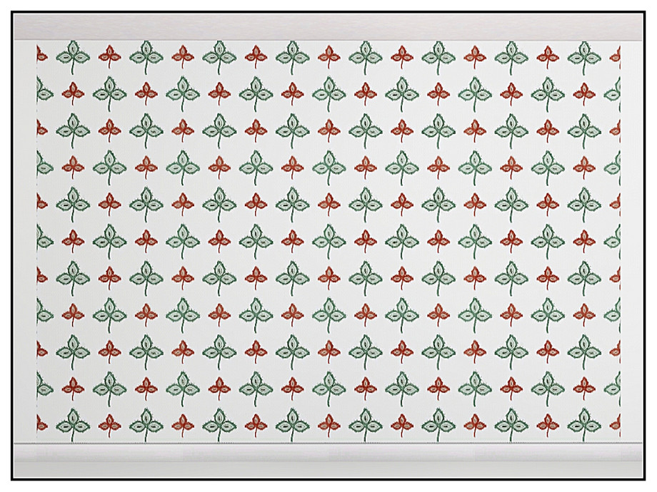 Fabric pattern: Liberty style design of sprigs of three leaves in red and green