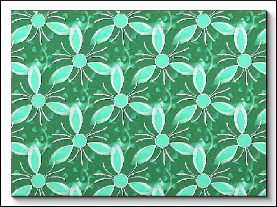 Fabric pattern 3-petal flower shapes in green.