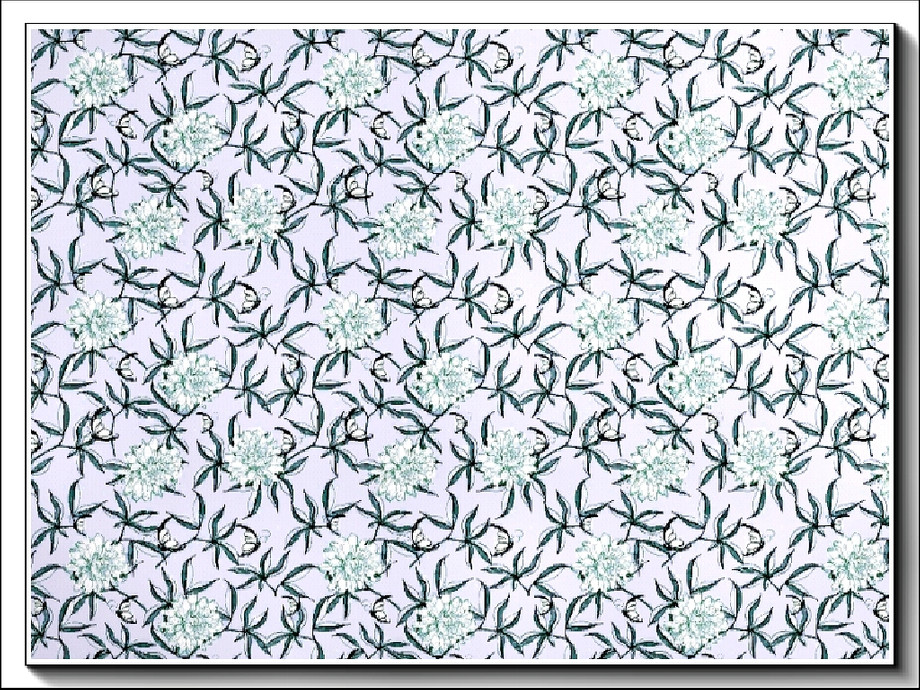 Fabric pattern: white peonies and blue/green bracts on pale blue.
