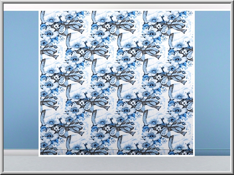 Fabric pattern: blue rockroses tied with a bow.