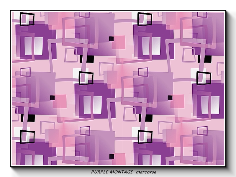 An overlaid design of rectangular shapes shading from white through pink to deep purple . . with a black accent here and there.