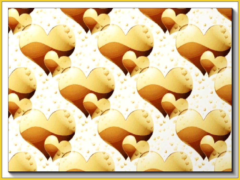 Geometric pattern: heart shaped balloons and floating hearts in shades of brown and yellow