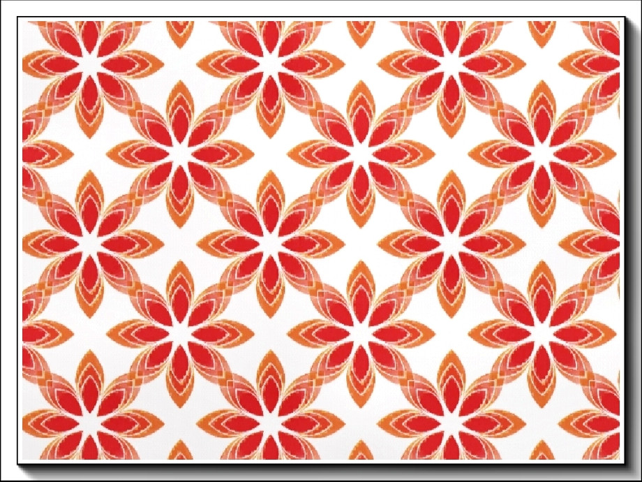 Geometric pattern - big red daisy shapes in red and yellow on white