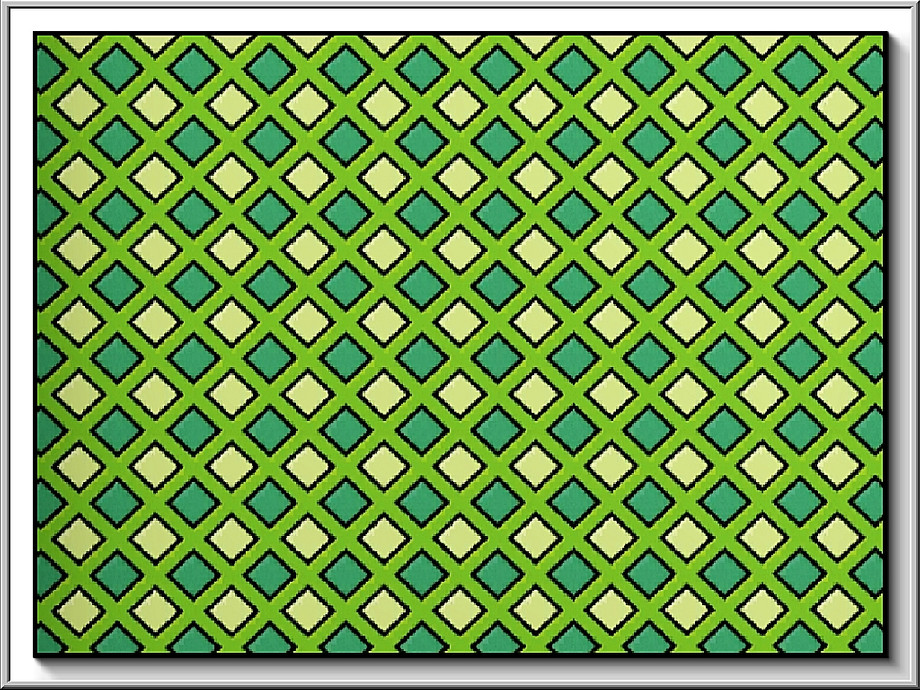 Geometric pattern: diamond inside diamond shapes in yellow and green.