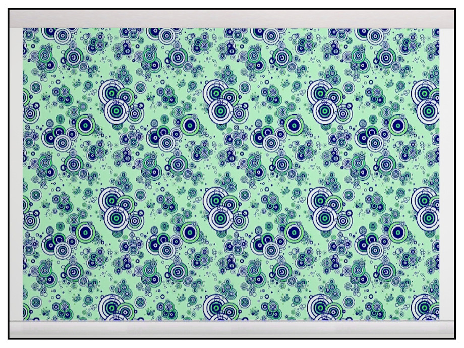 Geometric pattern: concentric circle 'bubbles' in green, blue and white