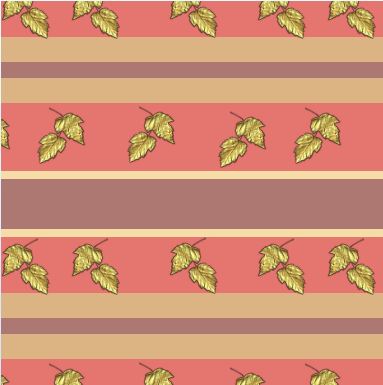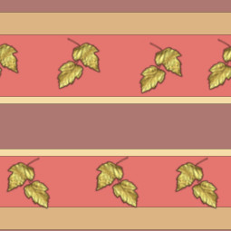 A warm toned horizontal pattern of alternating stripes and gold leaf motifs.