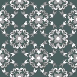 A simple linked medallion pattern in shades of grey and white.