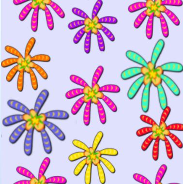 Novelty geometric flower shapes in neon shades make a cheerful, splashy pattern.