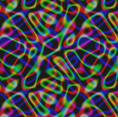 An abstract, geometric pattern representing the coloured reflections in an oil spill.