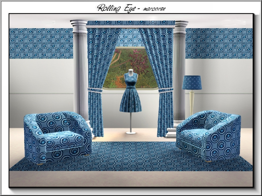 Sims 3 — Rolling Eye_marcorse by marcorse — Geometric pattern: whimsical design of a rolled eye, bule and white on blue.