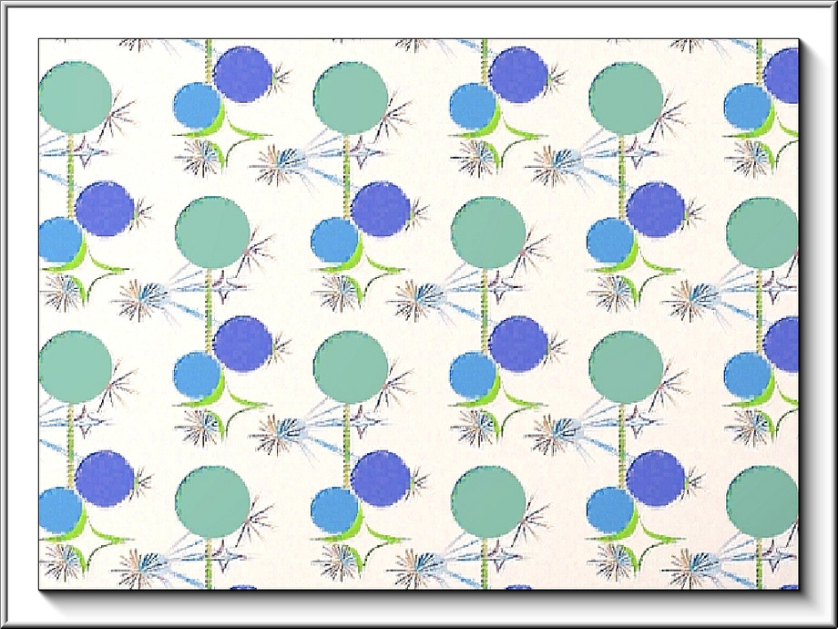 Geometric pattern - sunbursts and circle shapes in green and blue.