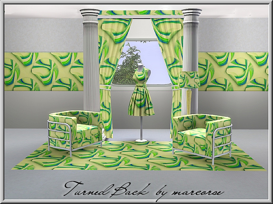 Sims 3 — Turned Back_marcorse by marcorse — Geometric pattern: circle motif with the edge curled in green, blue and